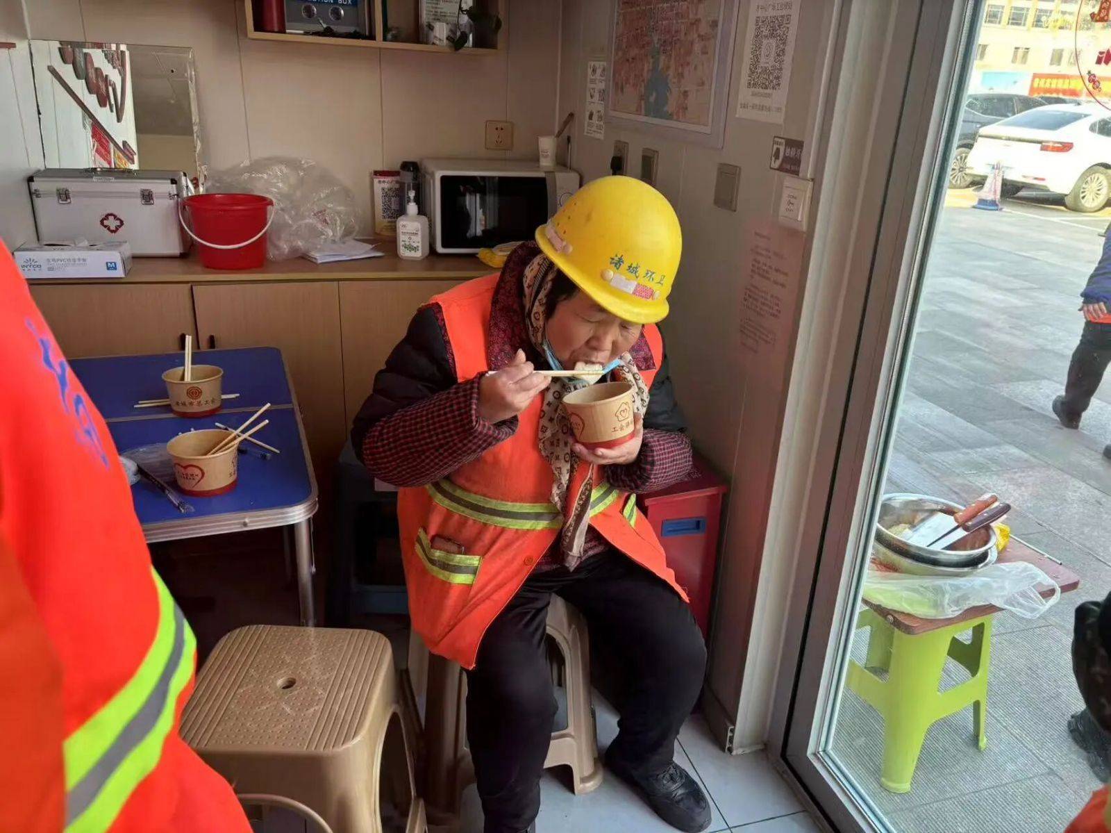 活动现场,诸城市总工会工作人员、驿站工作人员与志愿者分工协作、默契配合,和面、调馅、擀皮、包饺,指尖翻飞间,一个个饱满圆润的饺子整齐排列。鲜香的馅料、热闹的氛围,不仅勾勒出暖心互助的画面,更驱散了冬日的凛冽严寒。环卫工人、外卖骑手、执勤民警等户外劳动者陆续来到驿站,接过刚出锅的热饺子,轻声道谢间,暖意从指尖蔓延至心底。