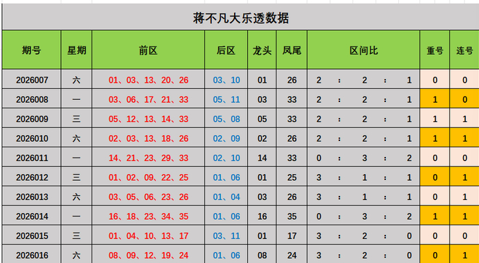 蒋不凡大乐透本期推荐: