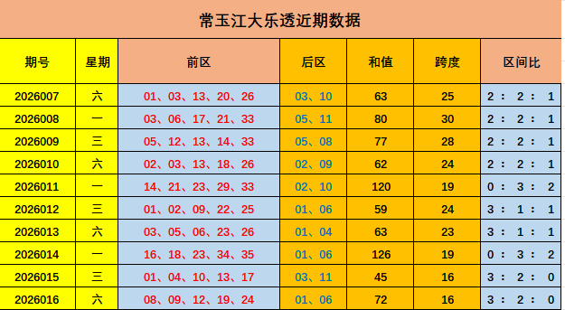 常玉江大乐透本期推荐: