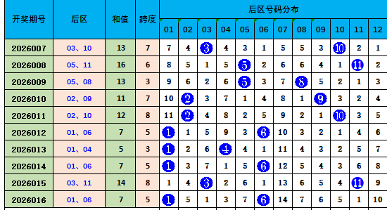 上期后区开出奇偶号码01,06,最近10期奇偶比11:9,奇数号码数量较高,本期推荐奇偶组合03,08。